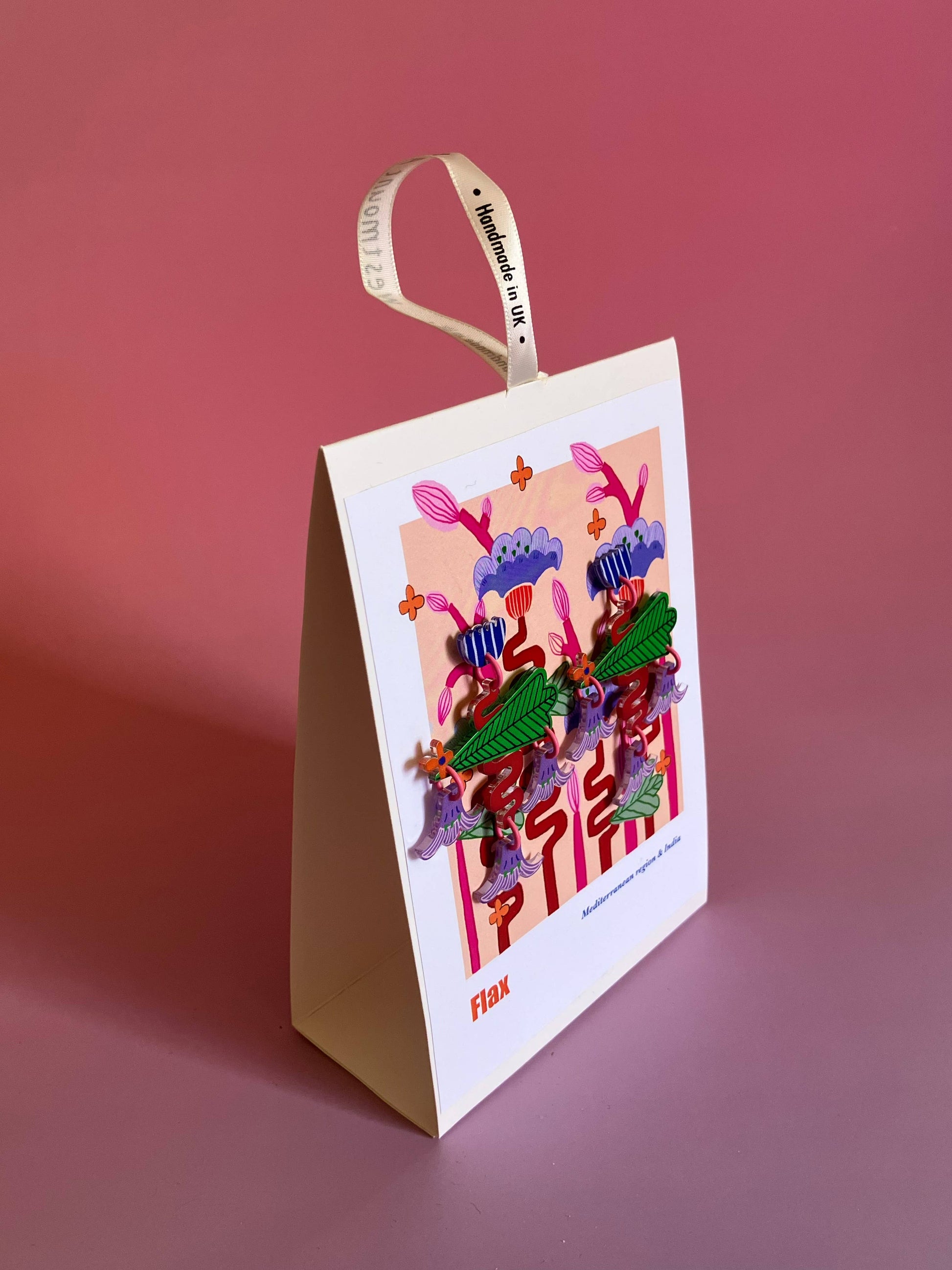 Westmount Art is a botanical illustrator and jeweller based in Edinburgh. Their earrings feature fun and colourful flora and are a truly unique wearable piece of art.