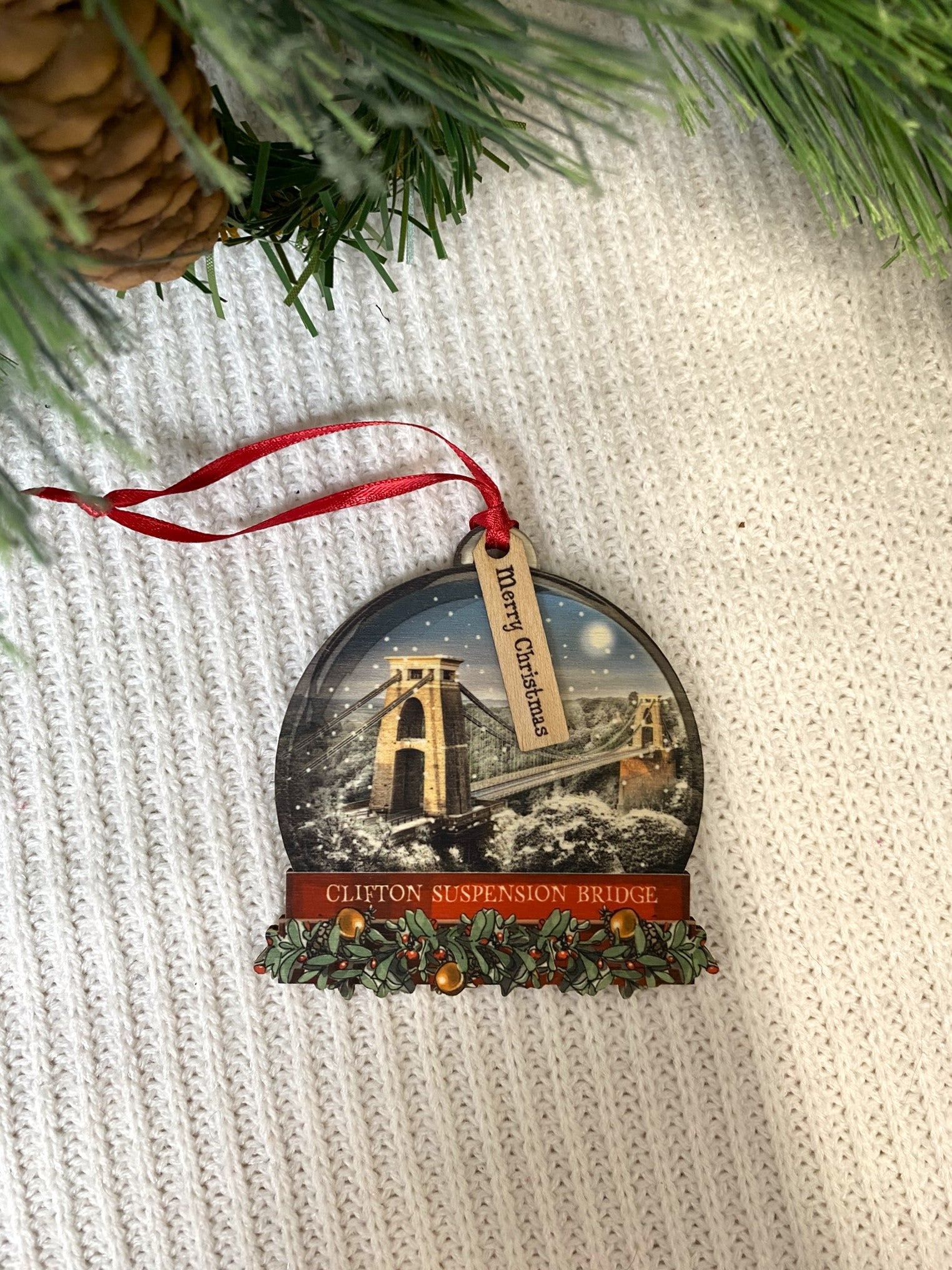 A seasonal decoration featuring the Clifton Suspension Bridge made from FSC certified wood. Made in the UK in small batches especially for the Clifton Suspension Bridge Musuem.